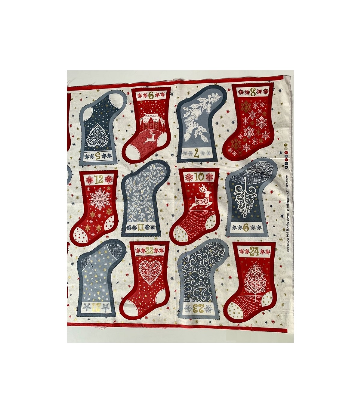Panell d'Advent  110 x 60 cm  amb 24 petites botes  amb estampat nòrdic de Makower .