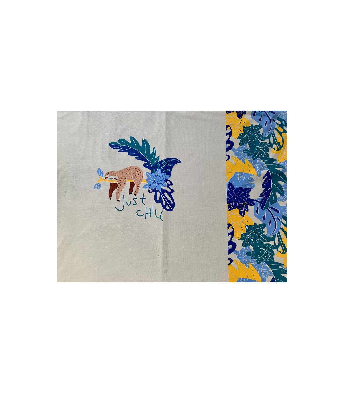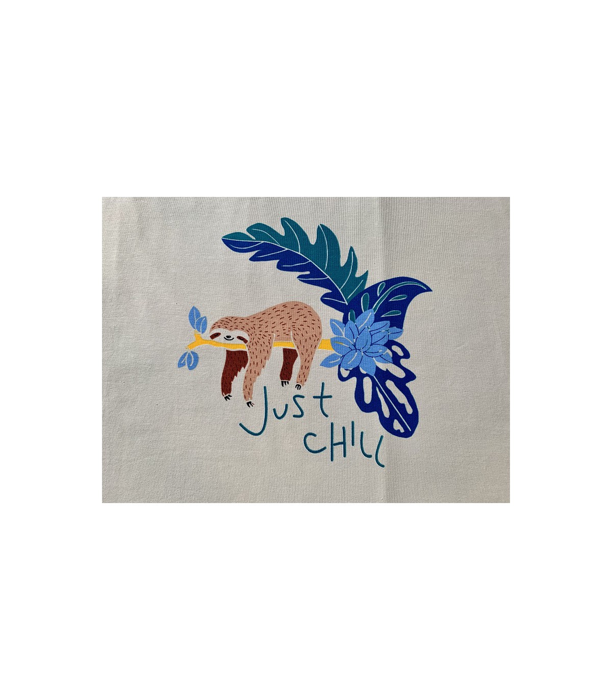 Panell de Katia de gènere de punt per a fer una samarreta de màniga curta amb un original estampat d'un ós mandrós per la part de davant i estampat floral per mànigues i darrera.