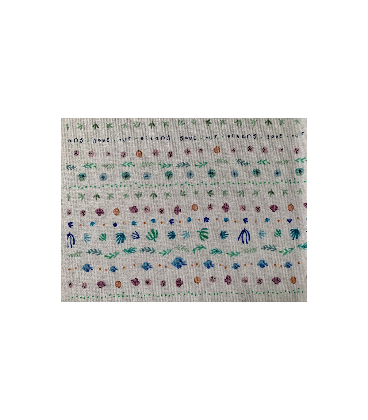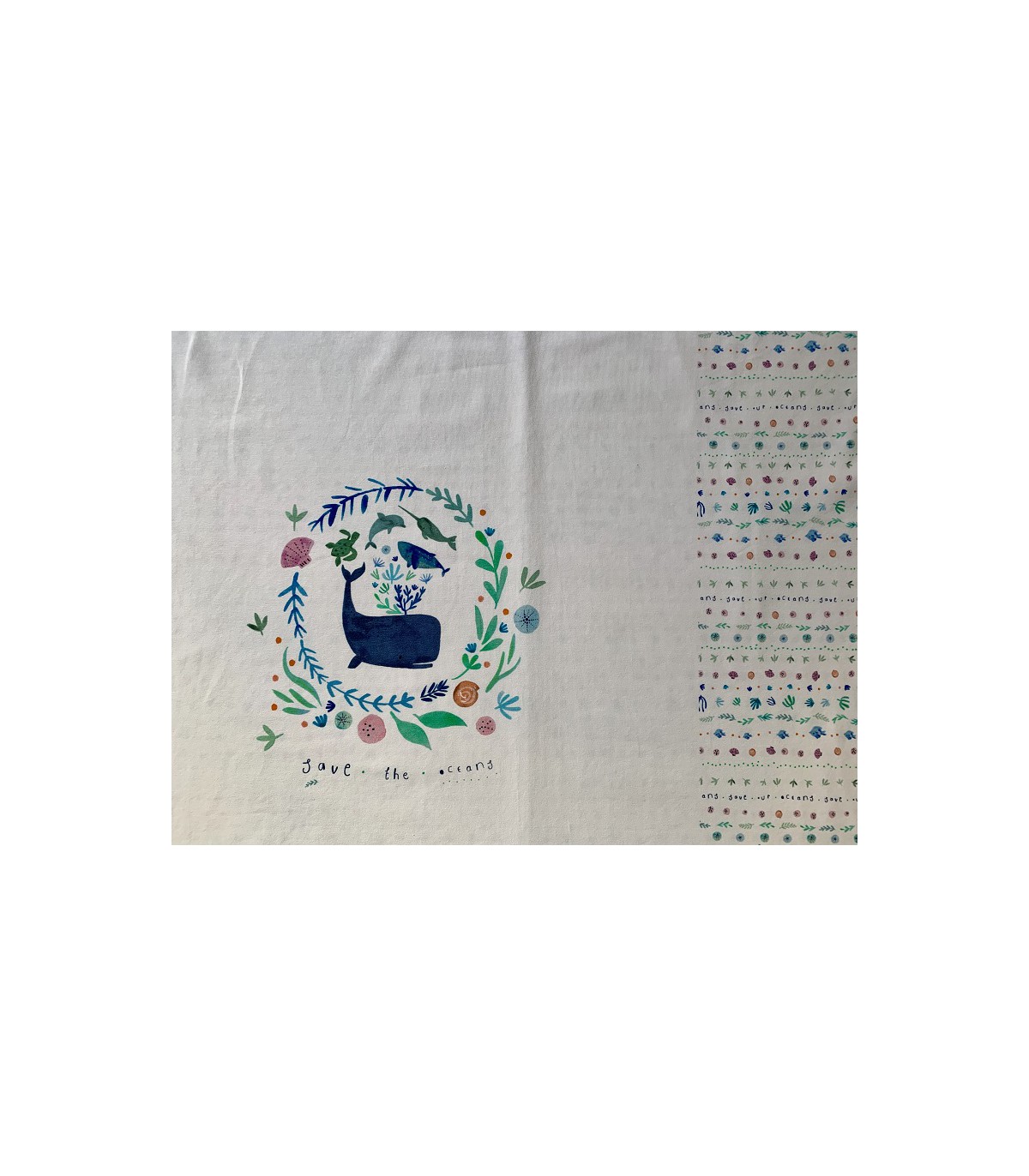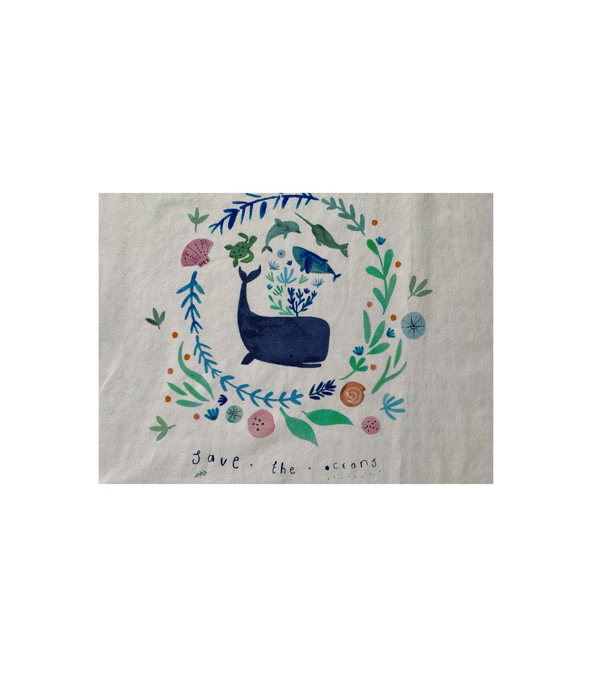 Panell de Katia de gènere de punt per fer una samarreta de màniga llarga amb divertit estampat d'una vaca amb flors al cap pel davant i amb flors per les mànigues i la part de darrera.