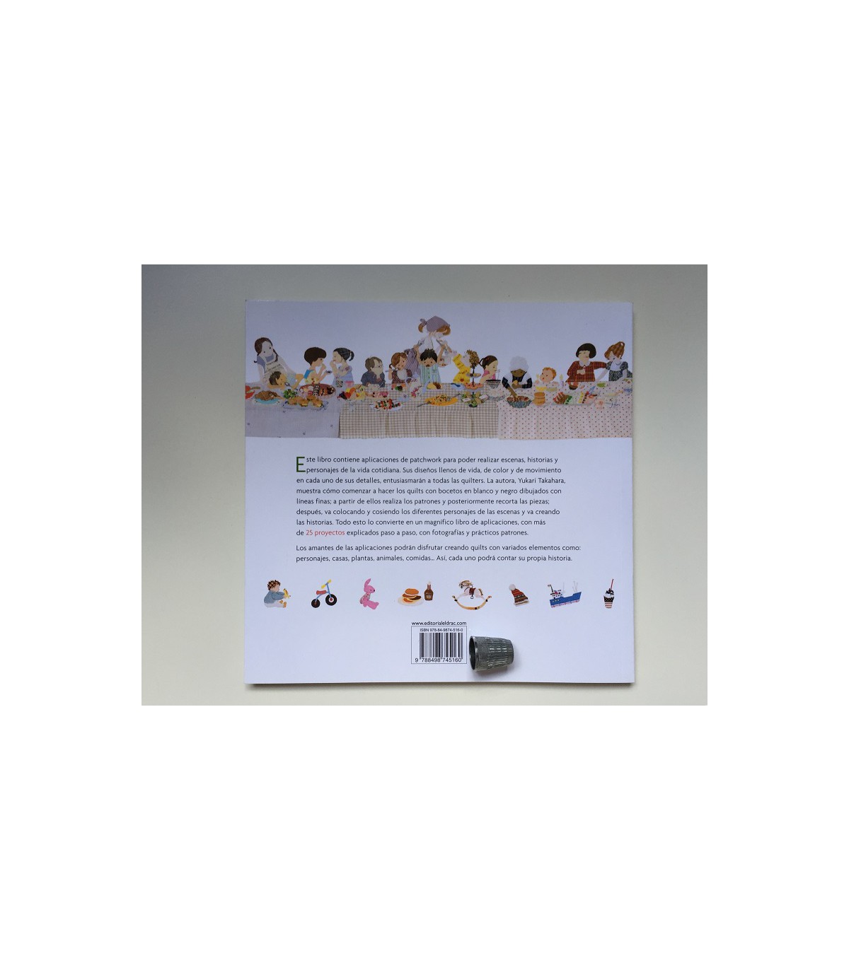 Yukari Takahara ens presenta aquest llibre d'escenes, històries i personatges de la vida quotidiana per a fer aplicacions de patchwork .