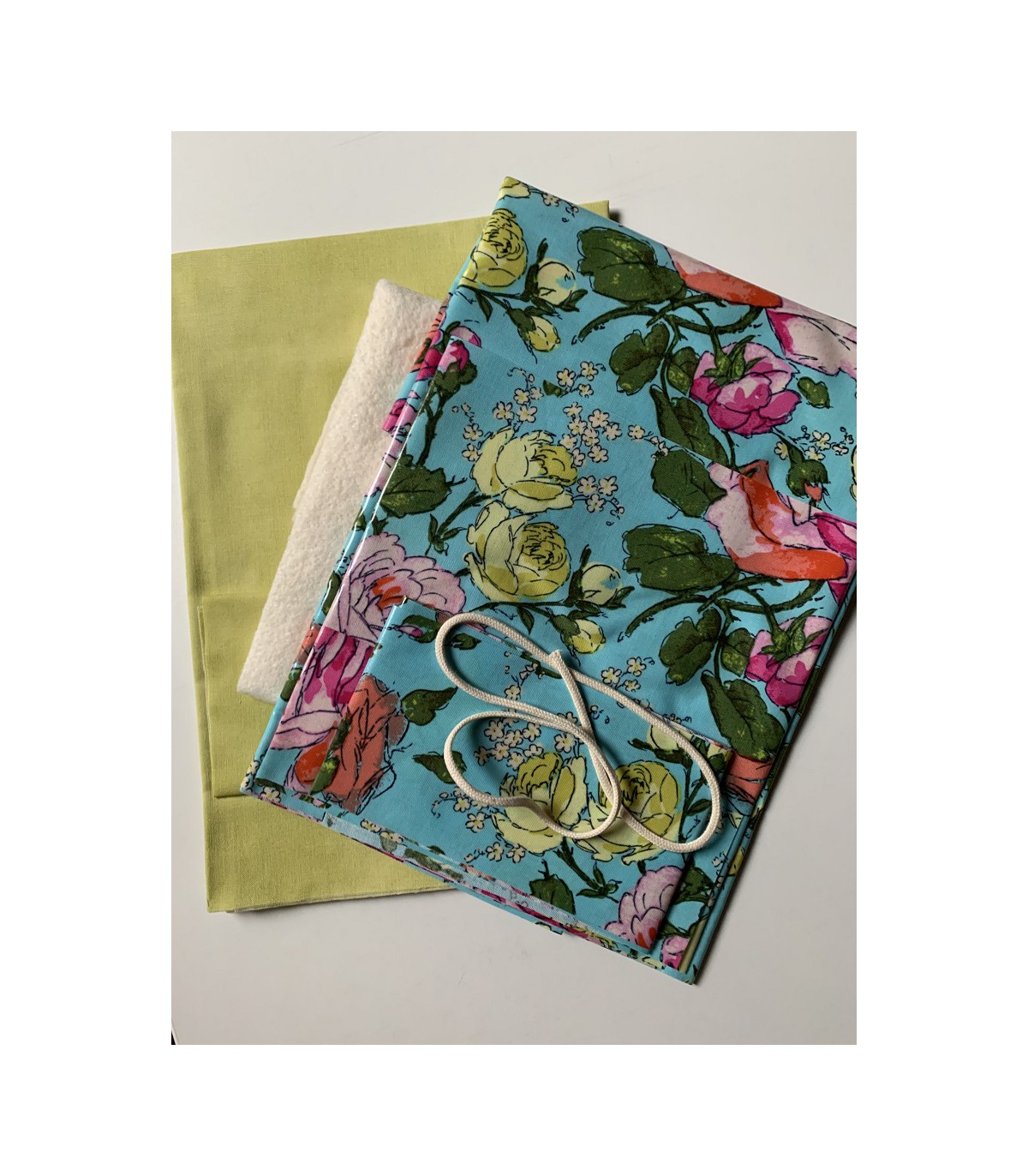 Kit para confeccionar esta bonita y práctica bolsa reversible, con tejano y estampado floral por un lado y con ropa lisa con efecto mármol y gran bolsillo floral por el otro. DIY.