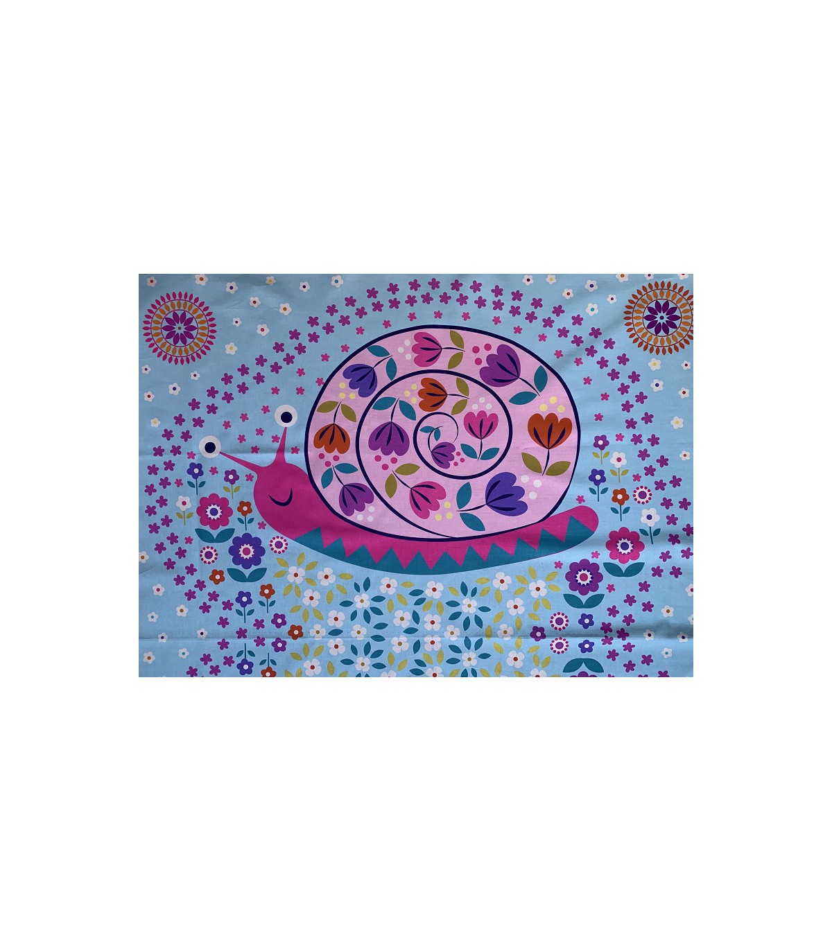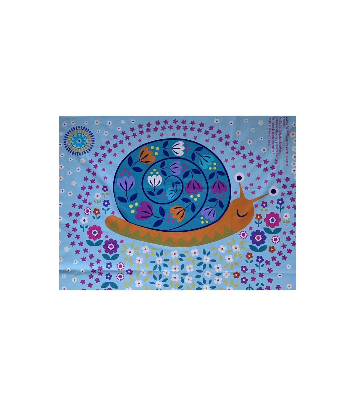 Panel infantil muy colorido que permite hacer un gran cojín con forma de caracol o una gran manta de juego o para la cuna.