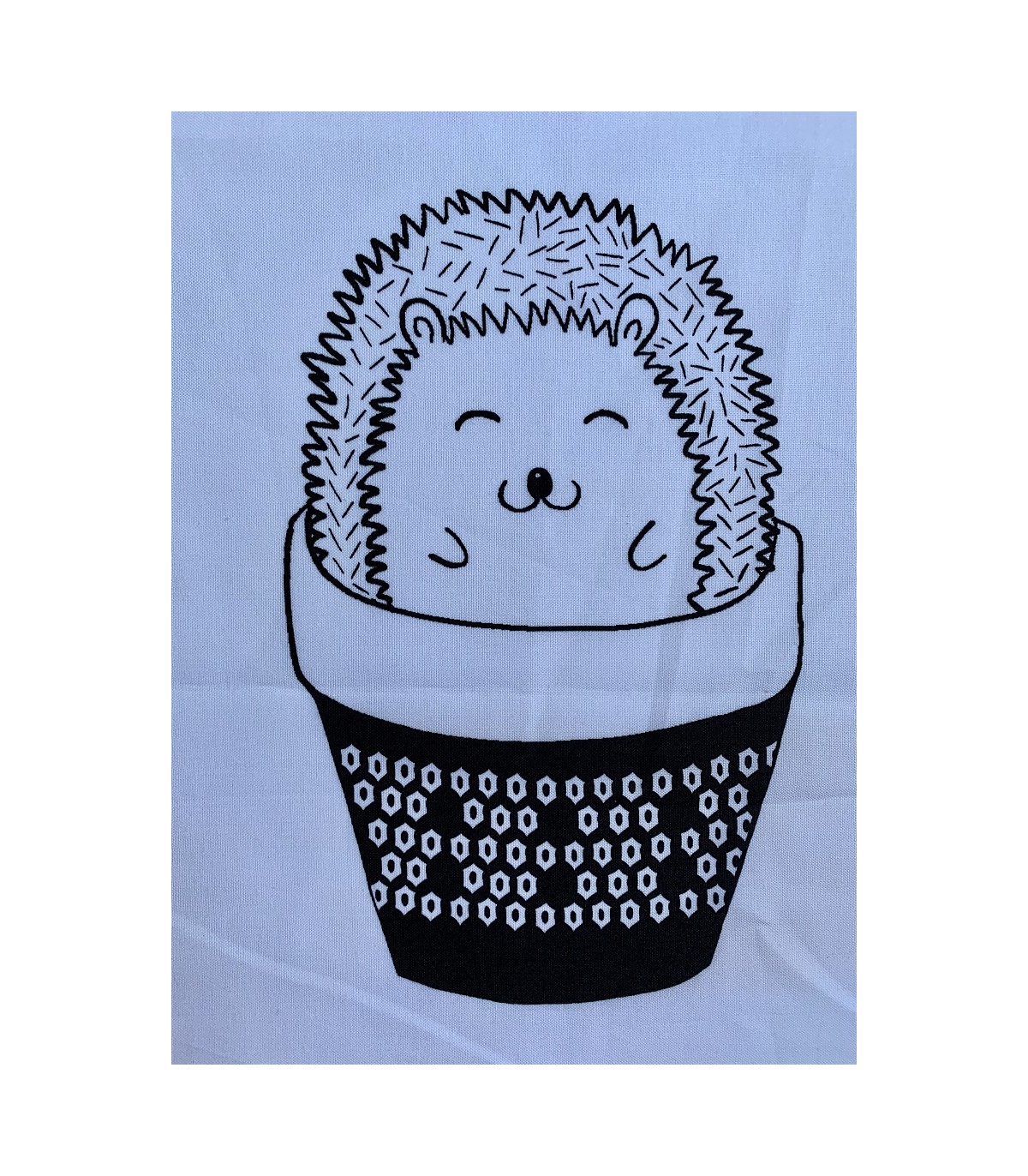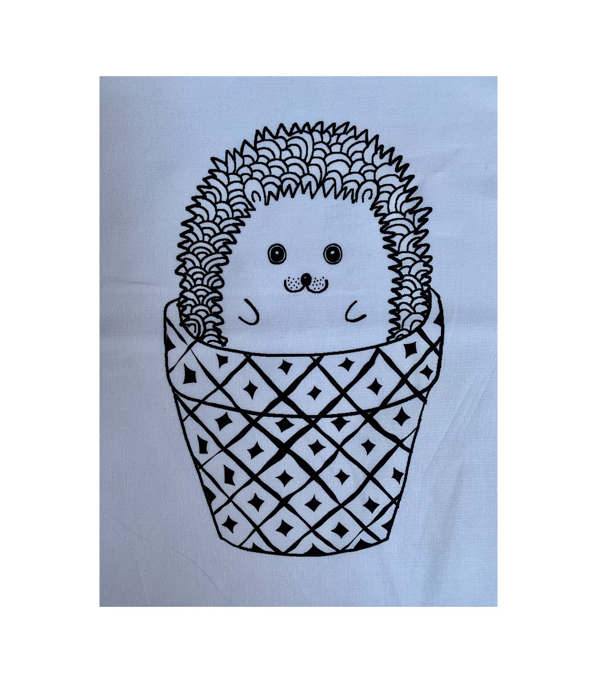 Este panel (52 x 110 cm) permite bordar su contenido dando color o volumen a los dibujos, hacer un pequeño quilt, manta para cuna, juegos o separar los 8 dibujos (27x26 cm) y trabajar por separado haciendo cojines, cuadros o formar parte de un quilt o manta más grande.